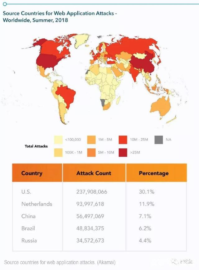 Akamai 表示,高速互联网接入、数据中心的普及等都会严重影响不同国家的攻击流量。鉴于很难准确确定攻击来源,因此不可能明确地确定攻击者的位置。